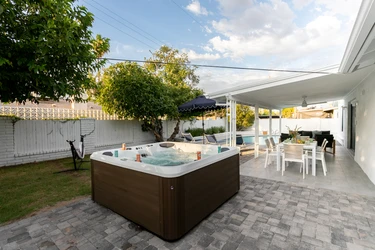 8 minutes to Old Town Scottsdale! This stylish home features a heated pool, hot tub, outdoor dining area with BBQ, and a hammock for lounging. The bright, colorful interior radiates warmth and cheer. Enjoy Scottsdale’s sunny weather, outdoor activities, cultural attractions, and renowned shopping and dining. Perfect for both relaxation and adventure, this home offers the ultimate blend of comfort and style.