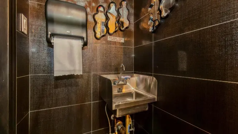 The restaurant’s beautifully appointed dining area welcomes guests with tasteful décor, soft lighting, and a comfortable yet upscale ambiance. Its modern bar and service area blend style and functionality, providing an inviting setting for cocktails, wine service, or casual gatherings.